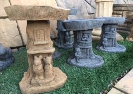 'Fairyland' birdbaths with rabbits or little piggies in grey or buff